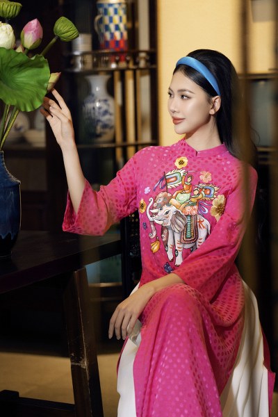 Lấy cảm hứng từ tranh Đông Hồ truyền thống, các họa tiết trên áo được vẽ thủ công trực tiếp lên nền vải, kết hợp với kỹ thuật thêu tay tinh xảo. Những bức tranh quen thuộc như "Vinh hoa", "Phú quý", "Gà trống hoa hồng", "Chăn trâu thổi sáo"... được biến tấu độc đáo.