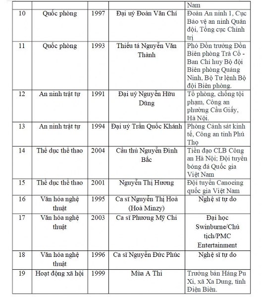 Cụ thể, danh sách 19 đề cử Gương mặt trẻ Việt Nam tiêu biểu năm 2025 gồm: