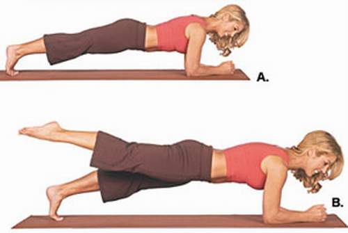 1B. Nâng chân phải lên từ 16-30cm, thót cơ mông lại. Giữ nguyên tư thế từ 3-5 giây. Từ từ hạ chân xuống và tiếp tục làm lại với chân trái. Mỗi chân bạn có thể làm từ 8-10 lần. (Nếu bạn tập trên tấm ván thì phải giữ nguyên vị trí của ván trong suốt thời gian tập).