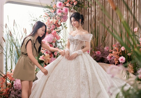 Á hậu Phương Nhi khoe vẻ đẹp ngọt ngào khi diện những bộ váy cưới được thiết kế kỳ công của NTK Kim Anh Lê.