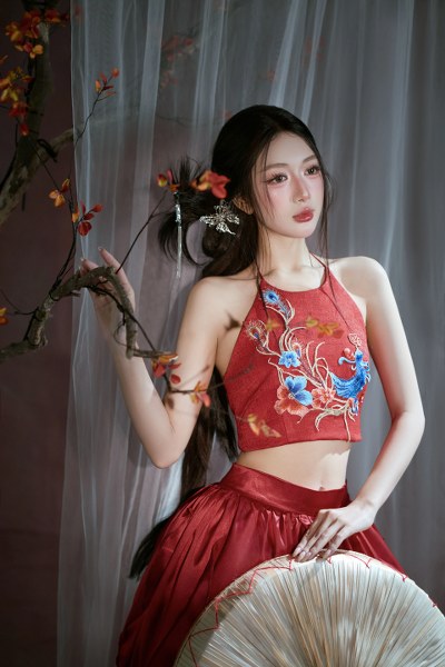 Khi chuyển sang yếm đỏ - gam màu thường gắn với không khí Tết và quan niệm may mắn trong văn hóa Á Đông - người đẹp thể hiện phong thái chững chạc, rõ nét hơn về biểu cảm và tạo hình.