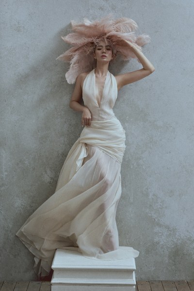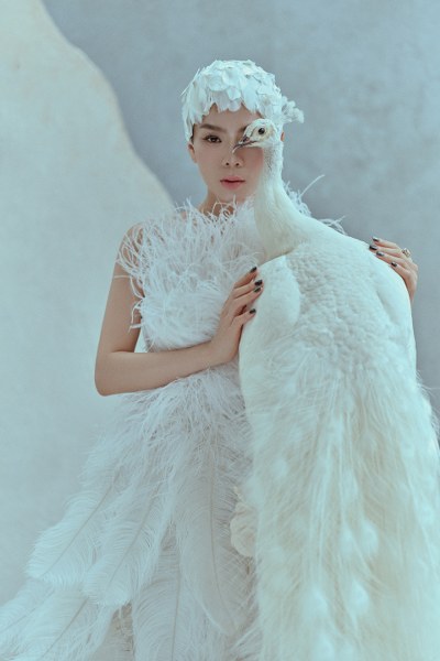 Bộ ảnh mới của Lệ Quyên lấy cảm hứng từ các loài chim như: công trắng, công trống, sếu vương miện... - biểu tượng cho vẻ đẹp sang trọng, tự do và khát vọng không ngừng vươn lên của người nghệ sĩ.