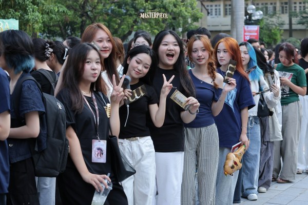 Đông đảo tân sinh viên xếp hàng trước Hội trường lớn - nơi diễn ra đêm nhạc hội Nhật Ký 20 - 2025: Masterpiece