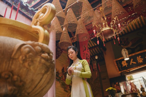 Hà Thanh Xuân còn vãng cảnh Phụng Sơn Tự ở quận 1 - địa danh nổi tiếng hút du khách trong nước và quốc tế.