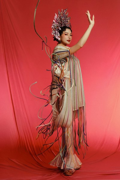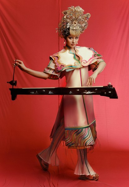 Hoa hậu Ketut Permata Juliastrid (Tata), người Indonesia, tạo dáng với trang phục sắc màu. Gần nửa năm sinh sống, làm việc tại Việt Nam sau đăng quang Miss Cosmo, người đẹp cho biết có nhiều trải nghiệm. Ngoài tìm hiểu về bộ môn cải lương, cô còn học hát dân ca các vùng miền.