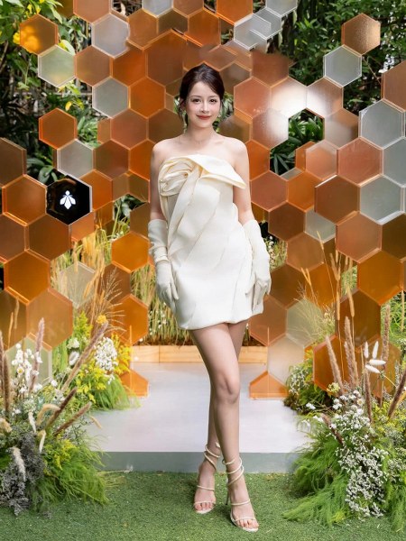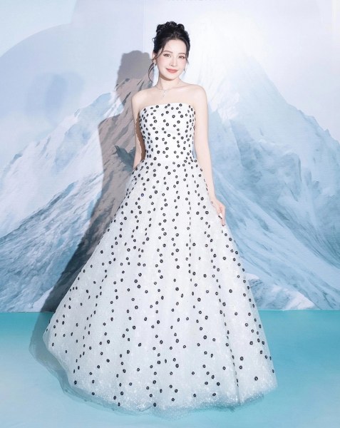 Xuất hiện tại một sự kiện năm ngoái, cô diện đầm xuyên thấu đính đá họa tiết cánh bướm của Chung Thanh Phong.