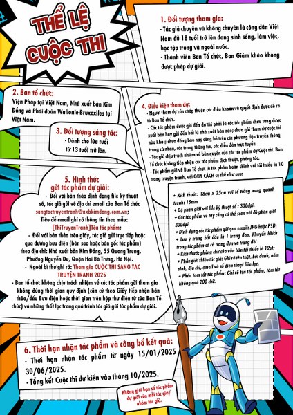 Với mong muốn tiếp tục tìm kiếm các tác giả, hoạ sĩ truyện tranh Việt Nam và phát triển nghệ thuật truyện tranh của Việt Nam, trong năm 2025 Viện Pháp tại Việt Nam, Nhà xuất bản Kim Đồng và Phái đoàn Wallonie-Bruxelles tại Việt Nam tổ chức Cuộc thi sáng tác truyện tranh lần thứ hai. Cuộc thi sẽ không chỉ là cơ hội để các tác giả, họa sĩ truyện tranh thể hiện tài năng, mà còn đóng góp phát hiện các tài năng, xây dựng cộng đồng sáng tác truyện tranh và phát triển dòng sách nghệ thuật này tại Việt Nam.