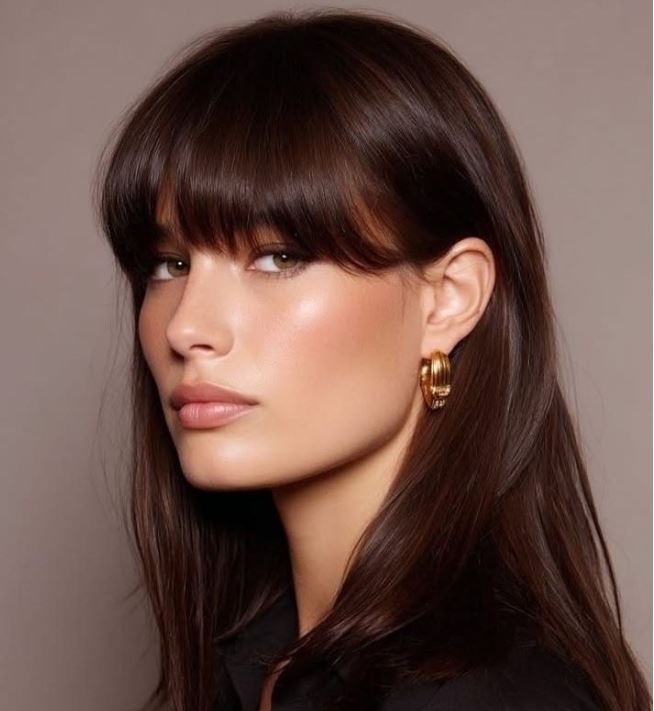 Tóc mái bằng dày (bold bang) lấy phần mái sâu từ đỉnh đầu, đường cắt ngang rõ ràng, gọn gàng và có thể uốn cong nhẹ theo trán. Đây là kiểu mái tạo ấn tượng mạnh, thu hút ánh nhìn ngay từ lần đầu tiên. Bold bang phù hợp với những gương mặt góc cạnh, cá tính rõ nét và những ai muốn xây dựng hình ảnh quyền lực, lạnh lùng theo hơi hướng avant-garde.