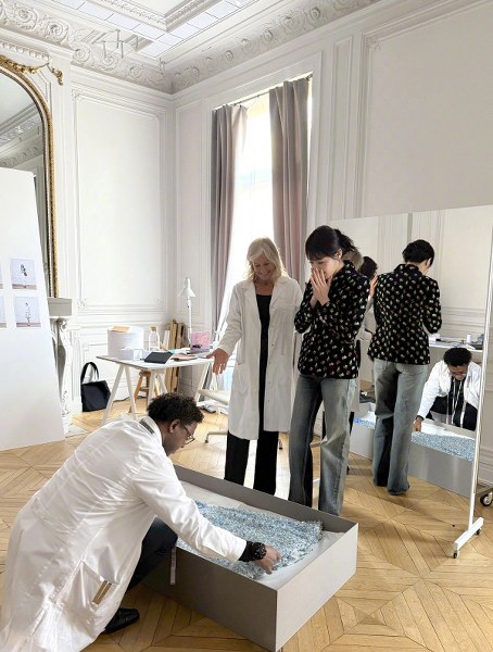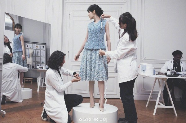 Trên Weibo, đại diện công ty quản lý cho biết Nhiệt Ba bất ngờ với thiết kế mà nhà mốt thực hiện cho cô, chiếc váy được ví lãng mạn như hoa xanh trên biển.
