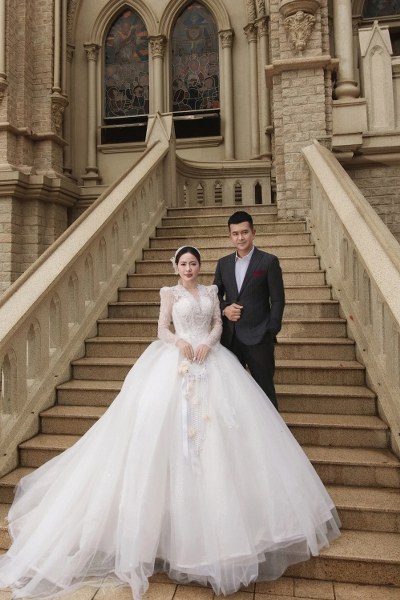 Diễn viên Hùng Thuận - 42 tuổi, nổi tiếng với vai bé An phim "Đất phương Nam" - chụp ảnh cưới cùng bạn gái Tuệ Tâm.