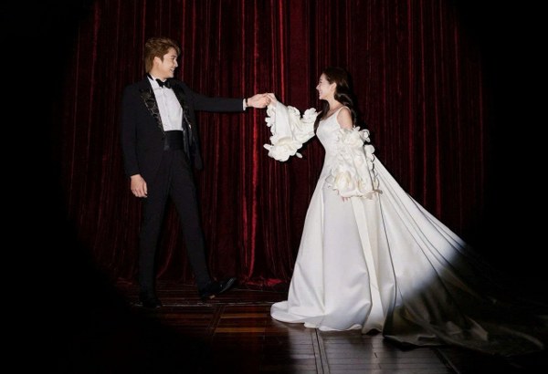 Chuẩn bị lên xe hoa, Đình Tú - Ngọc Huyền đã thực hiện bộ ảnh cưới tại Nhà hát Kịch Hà Nội, nhận nhiều lời khen từ khán giả.