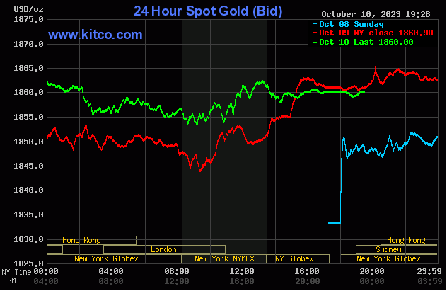 Giá vàng thế giới trên sàn Kitco mở phiên giao dịch ở mức 1859.9 - 1860.9 USD/ounce. Trong phiên trước, giá vàng dao động trong khoảng 1852.4 - 1863.7 USD/ounce.
