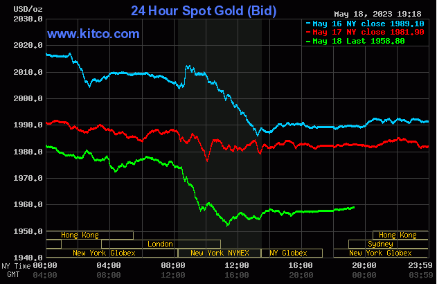 Giá vàng thế giới trên sàn Kitco mở phiên giao dịch đầu tuần ở mức 1958.9 -1959.9 USD/ounce. Giá vàng giao kỳ hạn tháng 6 giảm 7,1 đô la xuống 1977,8 đô la Mỹ/ounce.