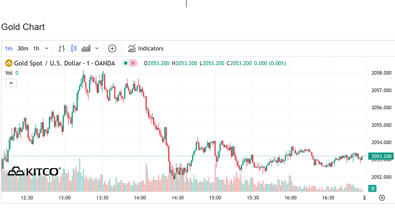 Giá vàng trên sàn Kitco chốt phiên cuối tuần giao dịch ở mức 2.052 USD/ounce, tăng 0,36%. Giá vàng tương lai giao tháng 2/2024 trên sàn Comex New York giao dịch ở mức 2.064 USD/ounce.
