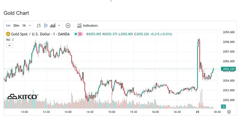 Trên thị trường quốc tế, giá vàng hôm nay đang trong kỳ nghỉ lễ sau khi đóng cửa ở vùng 2.053 USD/ounce, tương đương khoảng 60,5 triệu đồng/lượng.
