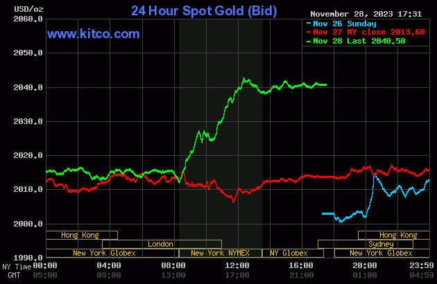 Giá vàng thế giới trên sàn Kitco mở phiên giao dịch ở mức 2040.5 - 2041.5 USD/ounce. Trong phiên trước, kim loại quý giao dịch trong khoảng giá 2010.9 - 2043.6 USD/ounce.