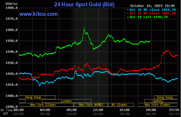 Tâm lý e ngại rủi ro sâu sắc hơn trên thị trường khi bạo lực ở Trung Đông bùng phát đã khiến các nhà giao dịch và nhà đầu tư tìm kiếm các tài sản trú ẩn an toàn như vàng và bạc. Giá vàng giao kỳ hạn tháng 12 tăng 26,7 USD ở mức 1962,4 USD/ounce.