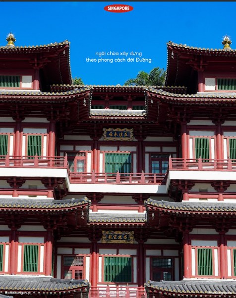 Chùa Răng Phật (Buddha Tooth Relic Temple) là một trong những công trình kiến trúc Phật giáo quan trọng nhất của Đảo quốc, với tổng kinh phí đầu tư lên đến hàng chục triệu USD. Tên của công trình tôn giáo xuất phát từ việc xá lị răng Phật được gìn giữ trong bảo tháp khổng lồ nặng 3.500 kg đặt tại đây. Để bắt trọn vẻ đẹp kiến trúc thời Đường Trung Quốc của công trình, bạn có thể cân nhắc góc chụp từ mặt tiền phía trước của chùa như Ở đâu cũng chụp. (Ảnh: Ở đâu cũng chụp)