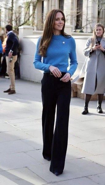 Vương phi Anh Kate Middleton ưu tiên quần cạp cao ống suông nhẹ, váy áo dệt kim trong ngày se lạnh.
