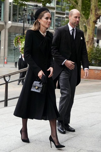 Vừa qua, đến dự một sự kiện, Vương phi Kate sánh bước bên Thái tử William trong trang phục đen gồm váy len mỏng thắt nơ kiểu thập niên 1970 của Catherine Walker, xách túi Chanel, giày cao gót Gianvito Rossi Gianvito. Cô phối vòng cổ ngọc trai, hoa tai kim cương.