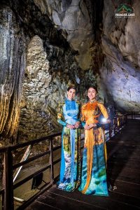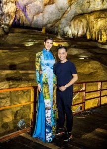Nhật Dũng gửi gắm đến lễ hội áo dài những gì tinh tuý nhất của vùng đất Quảng Bình, nhằm quảng bá và gửi thông điệp cùng chung tay bảo vệ di sản: Hang Sơn Đoong, Hang Én, Suối Nước Mooc, Động Phong Nha, Động Thiên Đường