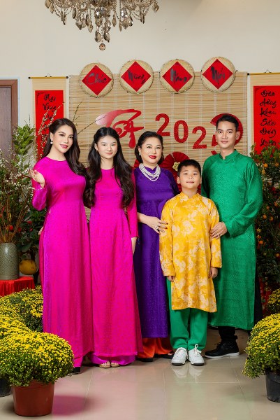 Bảo Tiên - con gái 17 tuổi của Trương Ngọc Ánh và Trần Bảo Sơn - cùng mẹ diện áo dài, chụp ảnh trong không gian sống của gia đình.