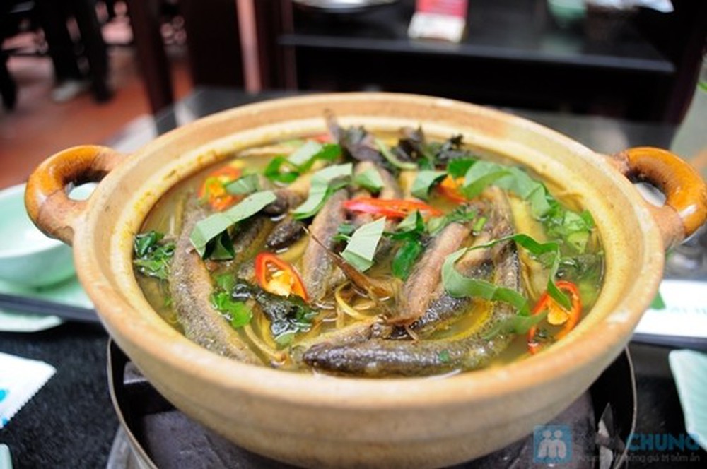 Cháo cá chạch bồi bổ sức khỏe, đẩy lùi yếu sinh lý. Nguyên liệu: cá chạch 300 – 500g, lạc nhân 100g, gạo tẻ 300g, dầu ăn, muối, xì dầu, đường, hành, rau thơm… vừa đủ. Cách làm: Đãi sạch gạo và lạc cho vào nấu cháo. Mổ chạch, lọc bỏ xương sống, rửa sạch, để khô rồi cho dầu ăn, muối, xì dầu và đường vào đảo đều. Khi cháo sắp được, cho chạch vào nấu chín cùng. Khi ăn cho thêm hành và rau thơm.