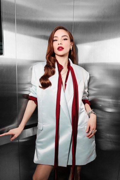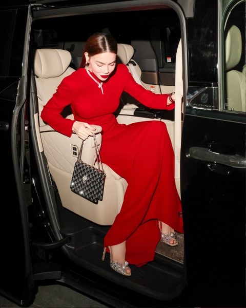 Mới đây, ca sĩ chia sẻ ảnh tham gia một chương trình. Hồ Ngọc Hà chọn thiết kế của Lâm Gia Khang gồm blazer dáng dài và sơ mi lụa đỏ, phối trang sức và đồng hồ đắt đỏ.