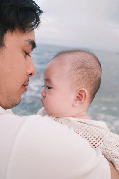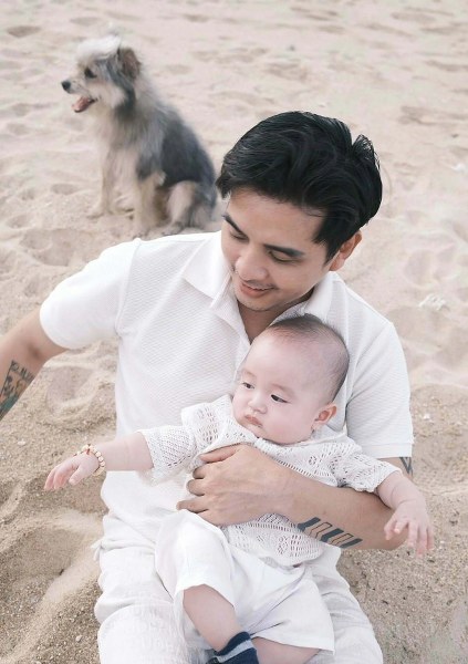 Hồ Quang Hiếu cùng vợ đưa bé Hin, tròn sáu tháng tuổi, đi du lịch hôm 10/7. Anh cho biết hạnh phúc khi bé ngày càng cứng cáp, khỏe mạnh.