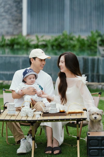 Hồ Quang Hiếu đưa vợ con về thăm quê nội hồi tháng 6. Hiện ca sĩ thuê một người giúp việc phụ chăm sóc con để vợ chồng anh tranh thủ nghỉ ngơi.