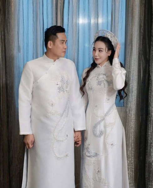 Hồ Quỳnh Hương diện áo dài trắng mang tên Bạch Song Phụng trong lễ cưới