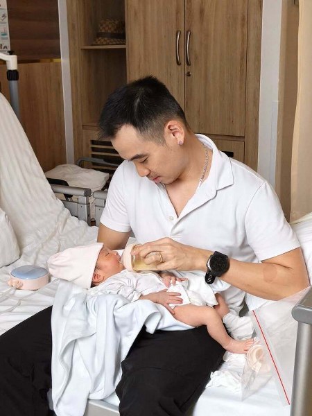 Suốt quá trình bà xã sinh con, chồng cô - nhiếp ảnh gia Tuấn Khôi luôn túc trực bên cạnh, nắm chặt tay, động viên tinh thần. Mỗi khi bà xã lên cơn đau dữ dội, anh không giấu nổi sự lo lắng, thậm chí còn rơi nước mắt vì căng thẳng.
