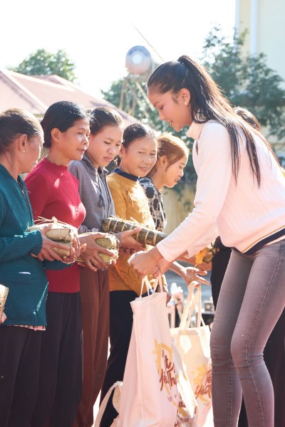 Năm ngoái, gia đình H'Hen Niê tặng mọi người gạo do nhà trồng được. Tuy nhiên, năm nay năng suất thu hoạch không tốt nên cô quyết định mua nếp để gói bánh, kết hợp tặng thêm nhu yếu phẩm gồm bột ngọt, nước mắm, đường. Toàn bộ chi phí trích từ tiền cá nhân của H'Hen Niê và một nhóm đồng hương Đắk Lắk.