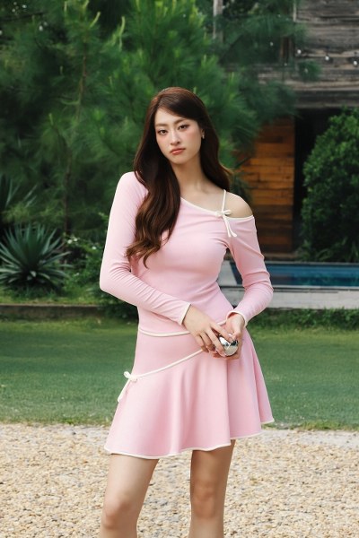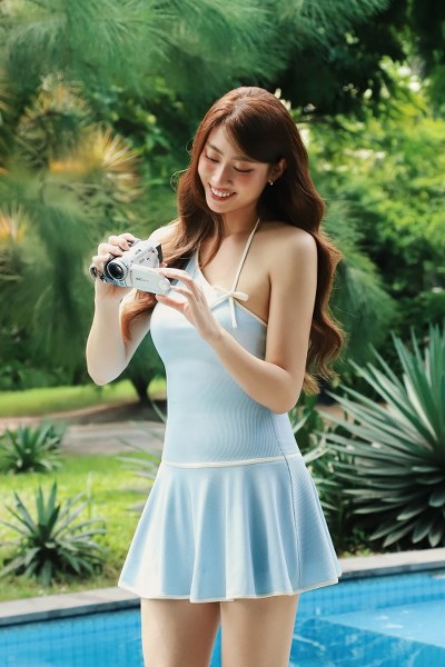 Điểm nhấn xuyên suốt các thiết kế là chi tiết nơ trên quai áo, đường diềm, vạch kẻ. Hai năm nay, nơ là xu hướng hot được nhiều cô gái yêu thích vì đem lại vẻ dễ thương, trẻ trung.