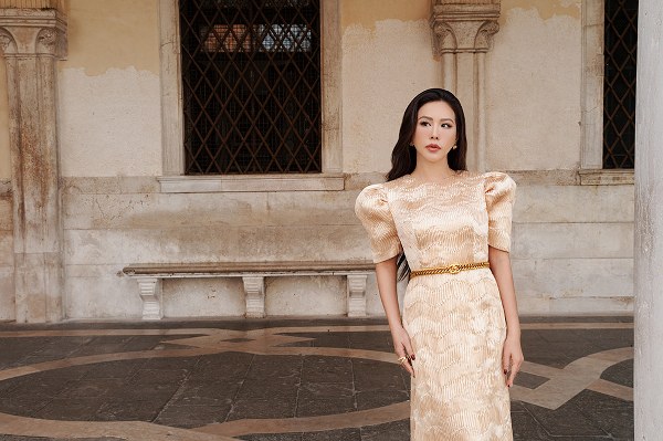 Hoa hậu Thu Hoài khoe sắc vóc quyến rũ tại Venice (Ý).