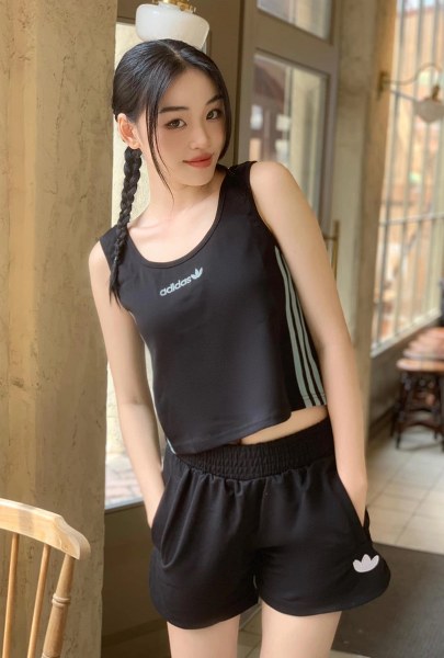 Yến Nhi toát lên vẻ năng động khi diện trang phục thể thao, tết tóc.