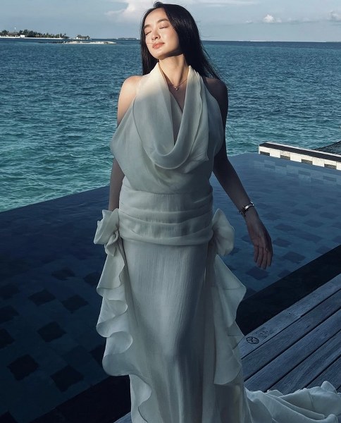 Nữ diễn viên thường chọn váy trễ vai nhẹ nhàng hoặc thiết kế ôm sát để tôn vóc dáng, nhưng vẫn giữ sự tinh tế, tránh những chi tiết quá táo bạo. Phong cách này giúp cô vừa quyến rũ vừa thanh lịch.