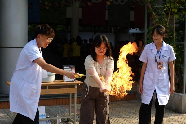Tham dự triển lãm khoa học Science Tornado lần đầu tiên, bạn Phương Chi (lớp 10 - THPT Chuyên Hà Nội - Amsterdam) chia sẻ trải nghiệm: “Tôi đã được trực tiếp tham gia thí nghiệm “Bàn tay lửa” dưới sự hướng dẫn của các anh chị Ban Tổ chức. Ban đầu tôi có chút e ngại vì sợ lửa, sợ nóng, nhưng dưới sự hướng dẫn của anh chị em đã có thể tự thực hiện một “bàn tay lửa” rất đẹp và cũng rất an toàn”.