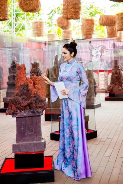 Hôm qua (10/11), nữ MC xinh đẹp Kim Huyền Sâm đã có mặt tại sự kiện triển lãm gốm nghệ thuật "Hiện linh" của tác giả Ngô Xuân Bính.