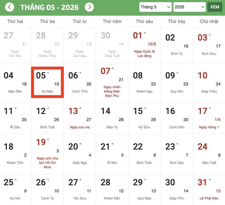 Ngày Lập hạ năm 2026 rơi vào thứ Ba, ngày 5/5 dương lịch, tức ngày 19/3 âm lịch