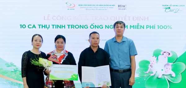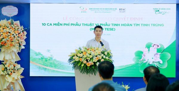 Mới đây, Bệnh viện Nam học và Hiếm muộn Hà Nội tổ chức Lễ công bố và trao quyết định “10 ca thụ tinh trong ống nghiệm miễn phí 100% và các chương trình xét duyệt miễn phí khác” trong khuôn khổ “Tuần Lễ Vàng 2025 – Cơ hội vàng cho giấc mơ tìm con yêu”.