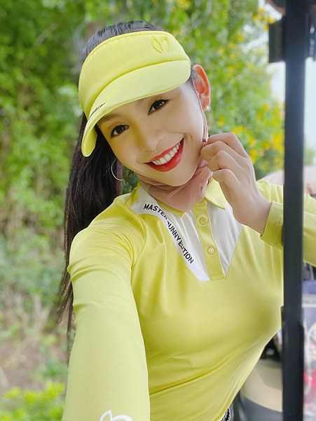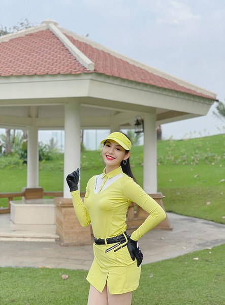 \"Người đẹp tài năng\" của Hoa hậu Thế giới Việt Nam 2019 - Lê Thanh Tú - chuộng trang phục màu sắc rực rỡ khi khoe sắc trên sân golf.
