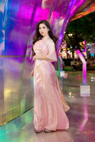 Lý Hương diện áo dài được đính kết bắt mắt, khoe nhan sắc trẻ trung. Điểm nhấn của bộ trang phục là chi tiết cách điệu ở phần tay áo, mang đến sự mới mẻ cho người mặc. Tại sự kiện, cô có dịp hội ngộ nhiều sao Việt như Hà Kiều Anh, Băng Châu…