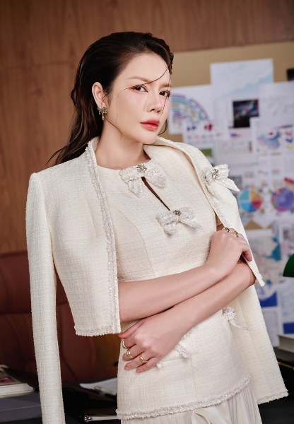 Lý Nhã Kỳ táo bạo hơn với một bộ vest có gam màu kem tươi sáng. Việc lựa chọn màu sắc này giúp "trẻ hóa" tổng thể, giảm sự nặng nề của trang phục công sở truyền thống.