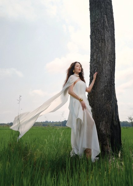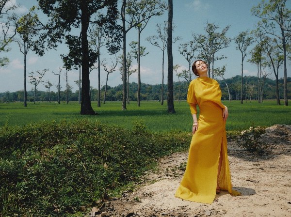 Diễn viên Lý Nhã Kỳ chụp ảnh kết hợp vẻ đẹp miền quê với phong cách thời trang sang trọng.