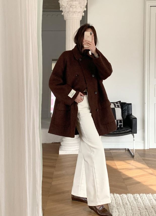 Áo khoác dạ dáng lửng là lựa chọn được ưu ái nhờ sự trẻ trung và gọn gàng. Thiết kế có độ dài trên đầu gối giúp tổng thể trang phục trông cân đối hơn, đặc biệt phù hợp với những người có chiều cao khiêm tốn hoặc không muốn bị “nuốt dáng”.