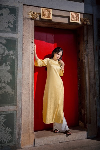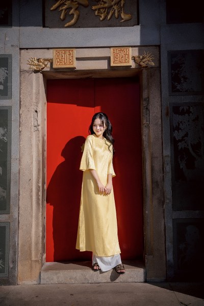 MC Thanh Trúc vừa thực hiện bộ ảnh năm mới Ấn Tỵ tại Hội Quán Nghĩa An và Chùa Bà Thiên Hậu vào buổi trưa nắng của những ngày cận Tết.
