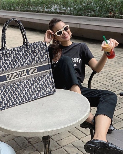 Bộ sưu tập túi hiệu của Thanh Hằng có chiếc Book Tote nổi tiếng của Dior, giá 3.350 USD (hơn 88 triệu đồng). Cô cho biết thích thiết kế vì đựng được nhiều đồ, phù hợp với phong cách phóng khoáng.