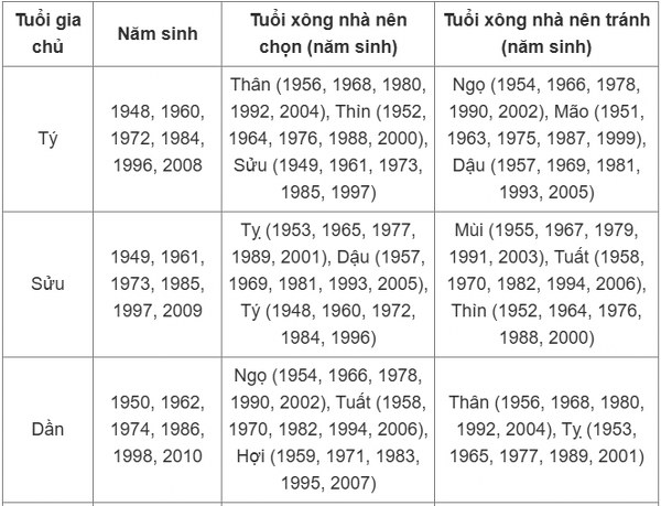 Các tuổi này được nêu ra như những gợi ý tham khảo, giúp gia chủ chủ động hơn trong việc sắp xếp người xông đất đầu năm.