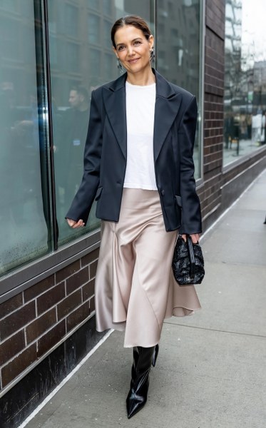 Blazer được xem là món đồ không thể thiếu trong tủ đồ của các ngôi sao vì tạo vẻ sang trọng. Theo Instyle, diễn viên Katie Holmes yêu thích những mẫu dáng rộng, dài, tạo sự thoải mái trong các hoạt động như đi làm, tới sự kiện.